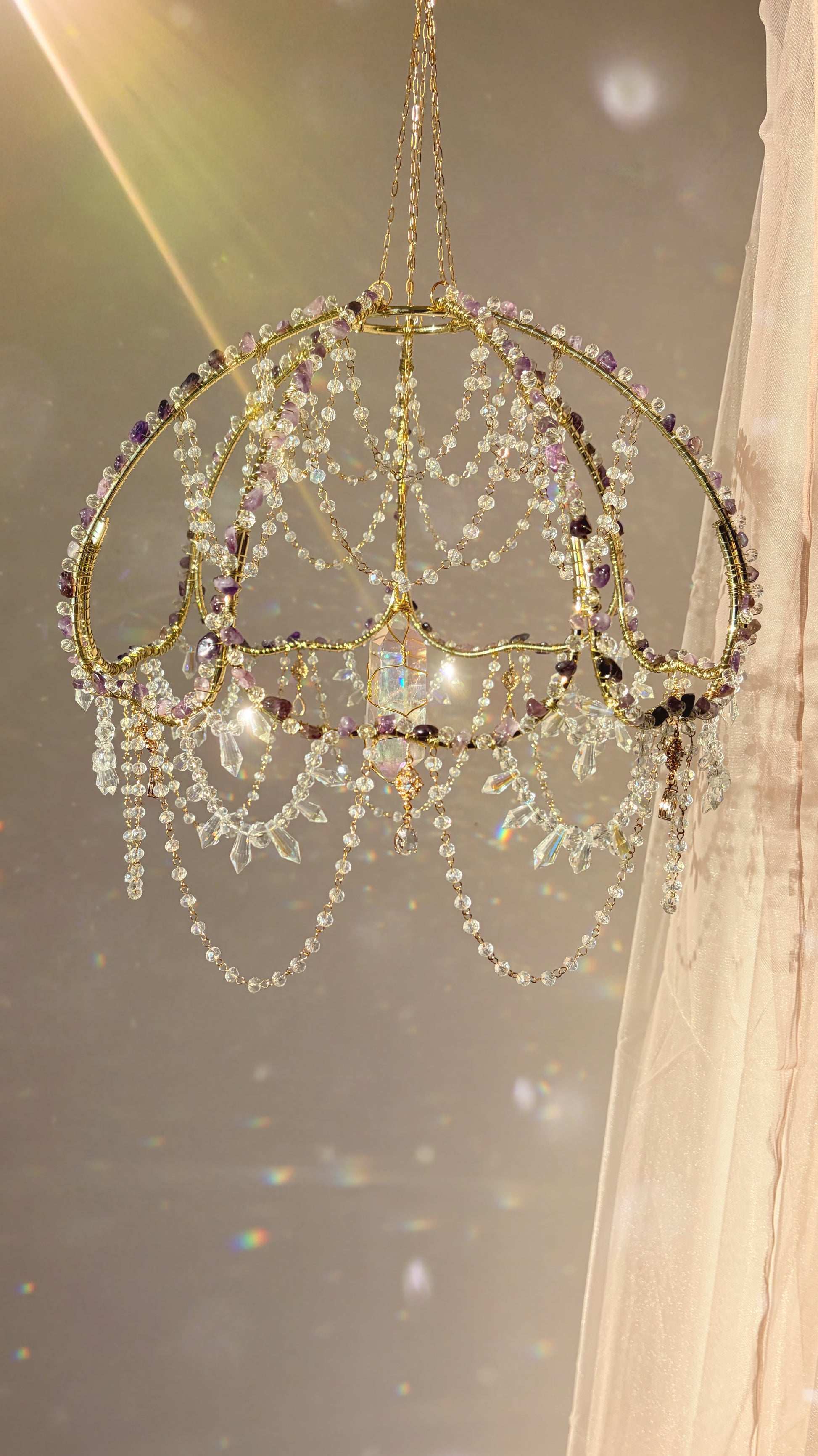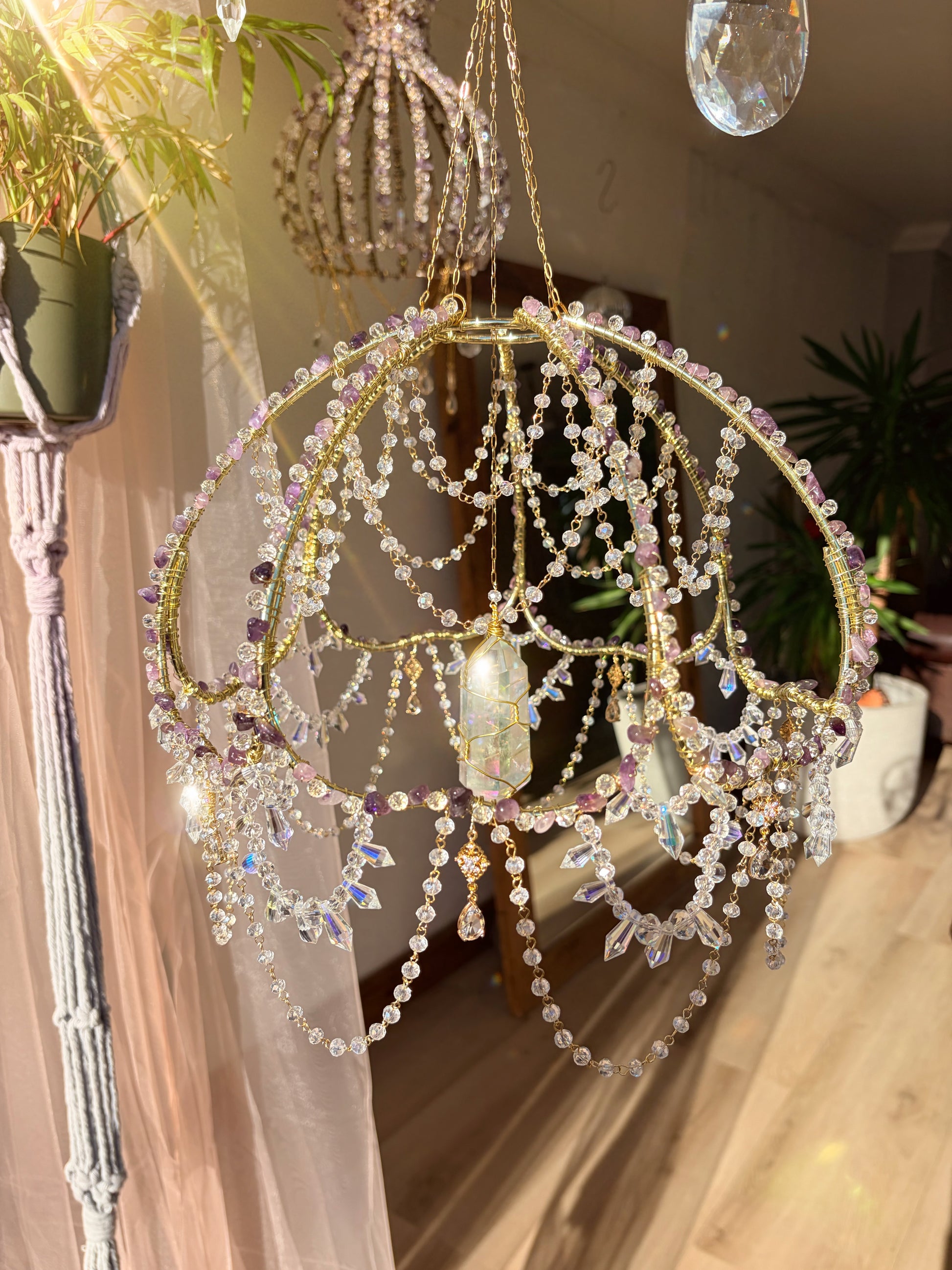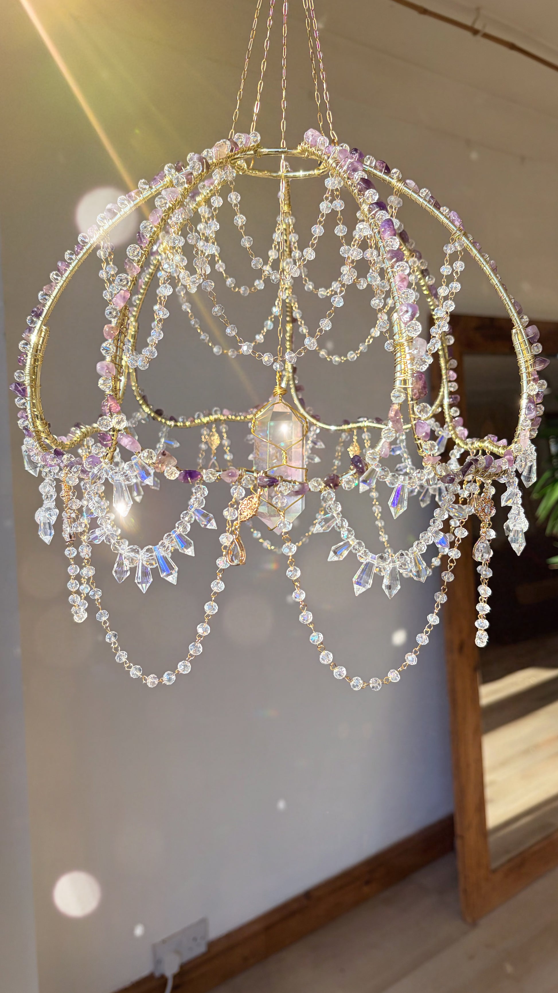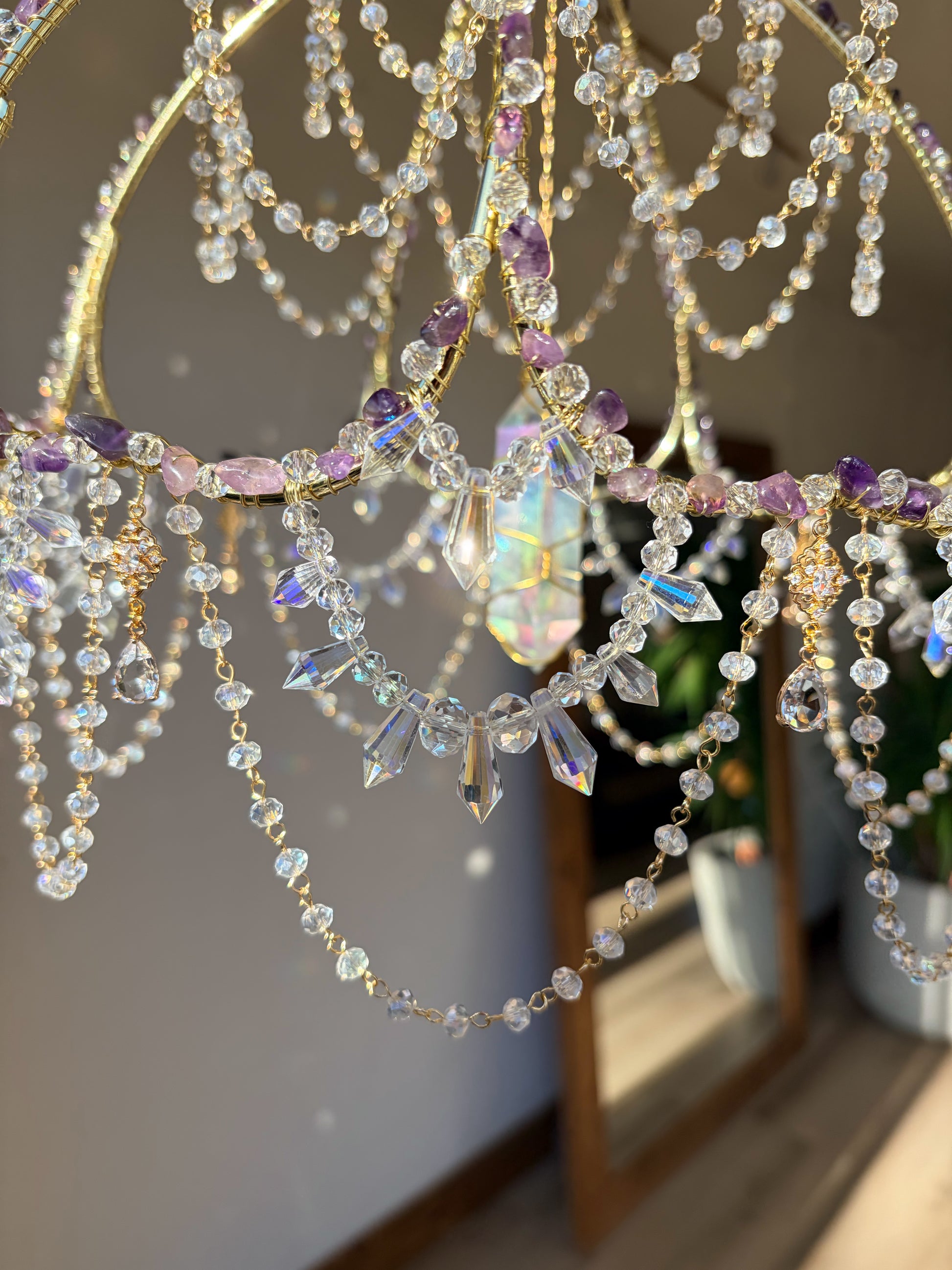 From my Enchanted Heart Collection, this handcrafted suncatcher lamp is layered with sparkling crystal chips and finished with a glowing aura double point that reflects the light beautifully. Designed to shimmer softly by day and glow enchantingly by night, it brings warmth, romance, and a touch of everyday magic into your space. Only one available ✨