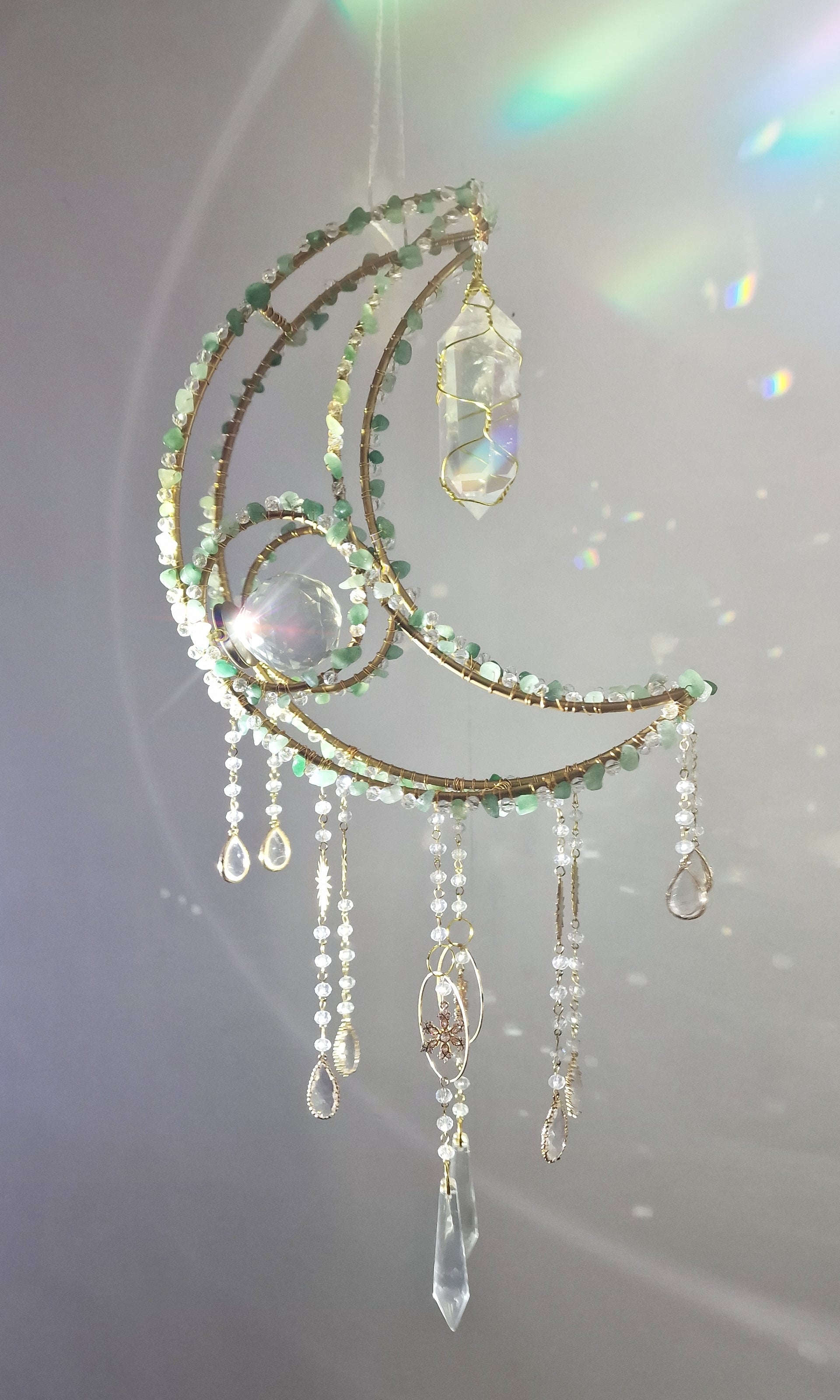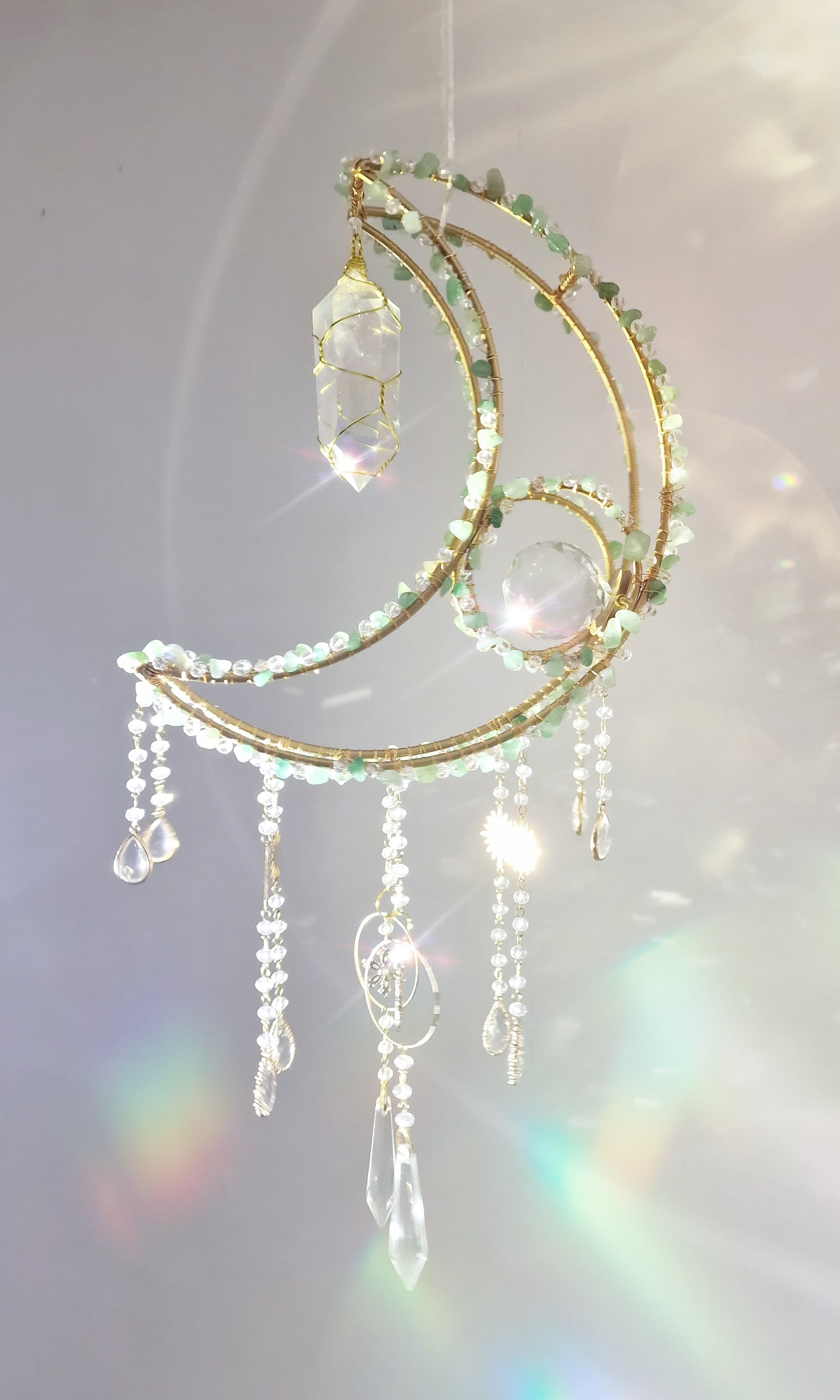 New Crescent moon crystal suncatcher with aventurine and aura quartz - Aquilo