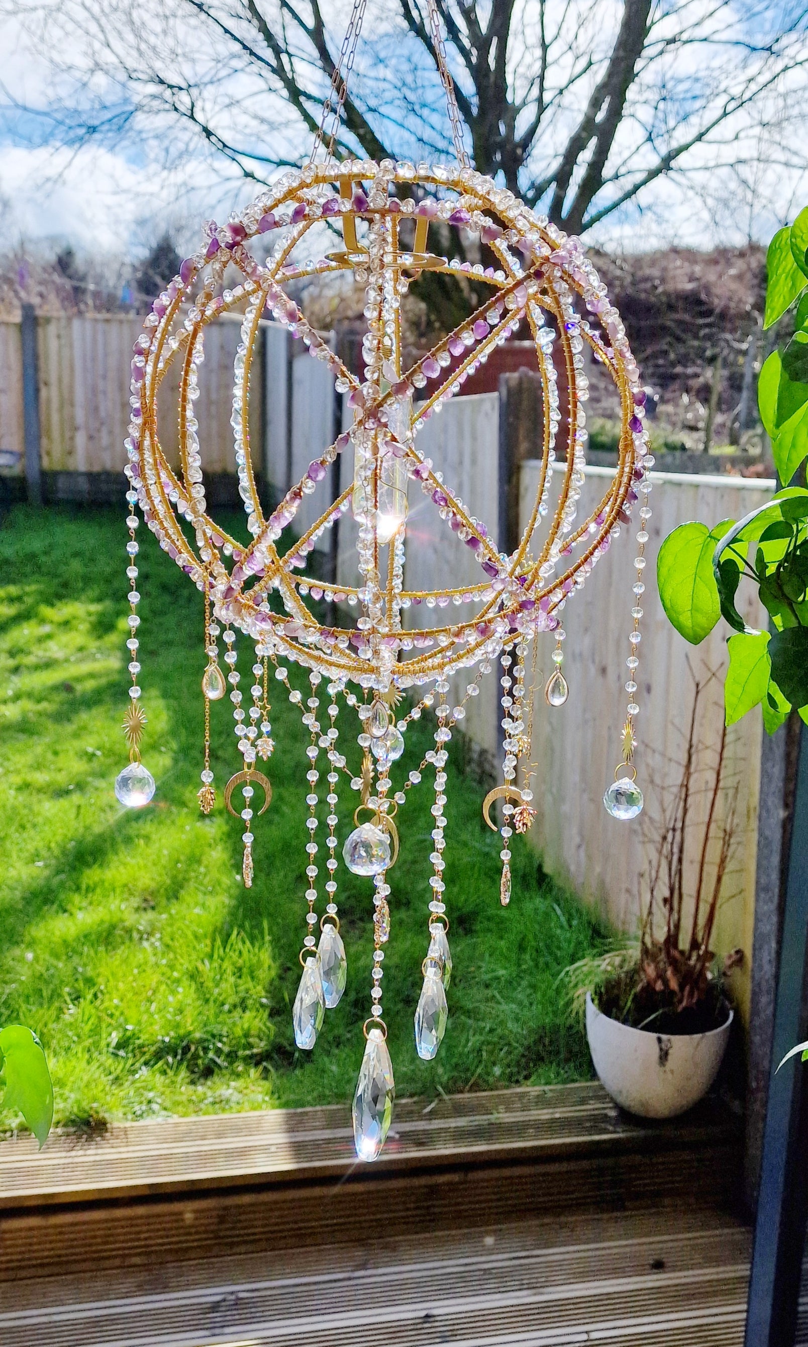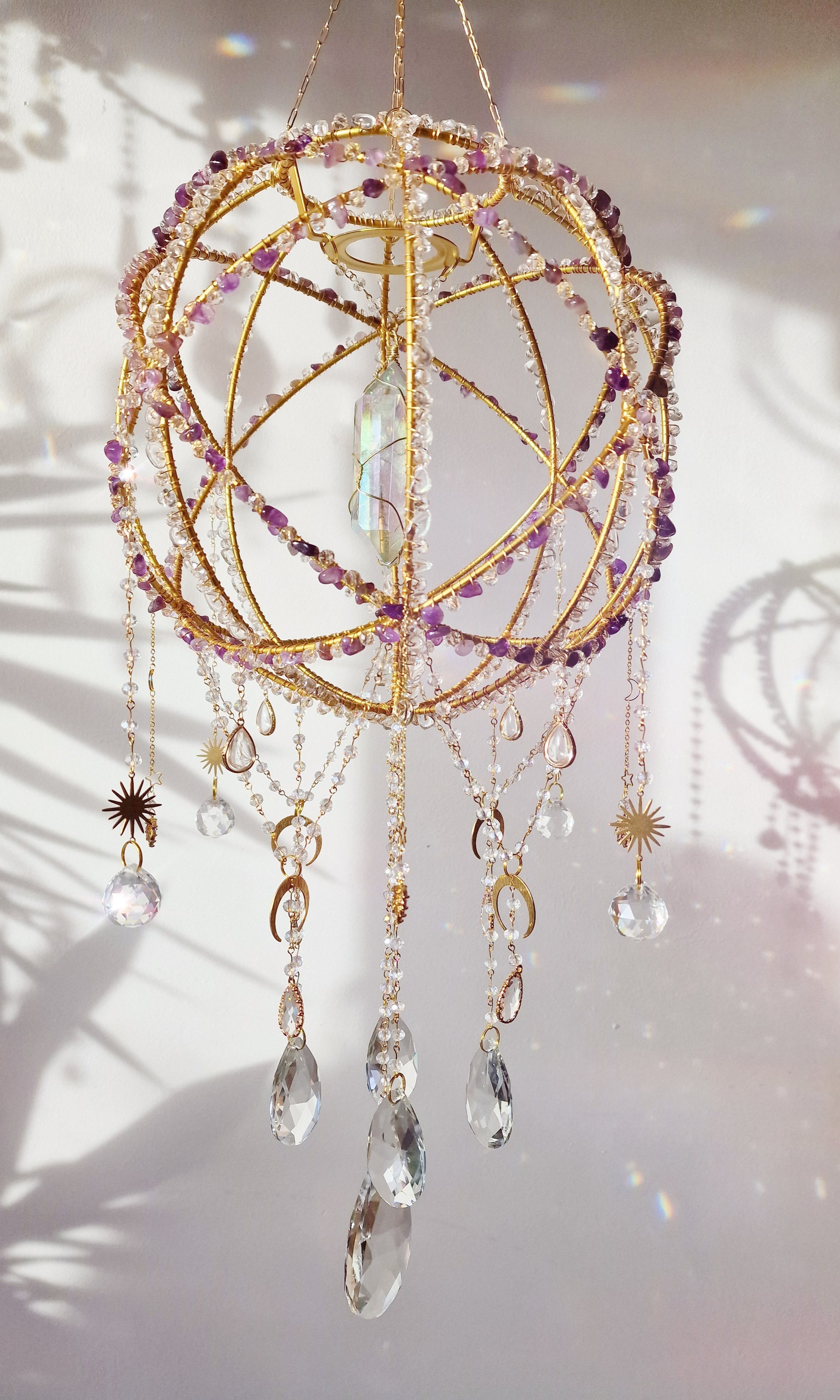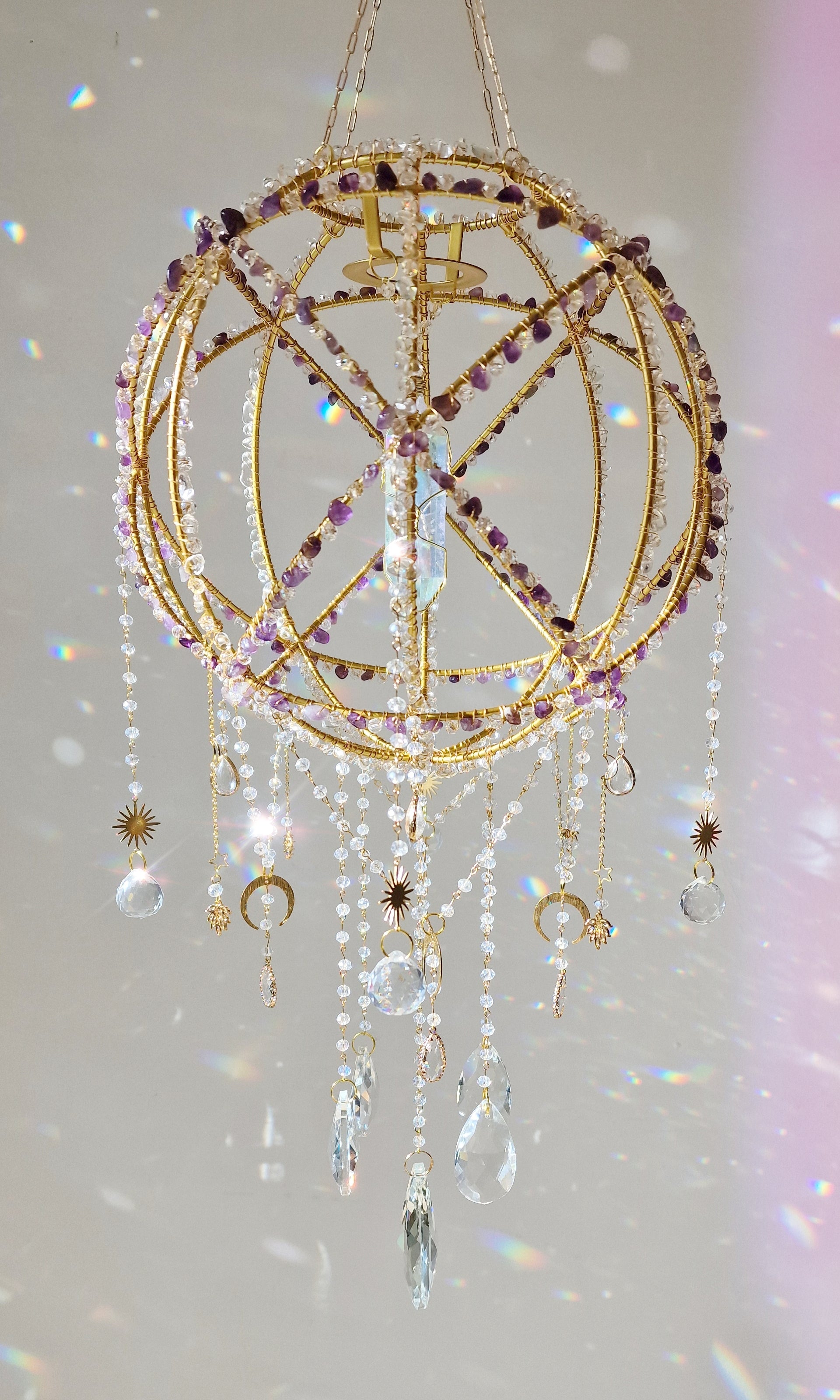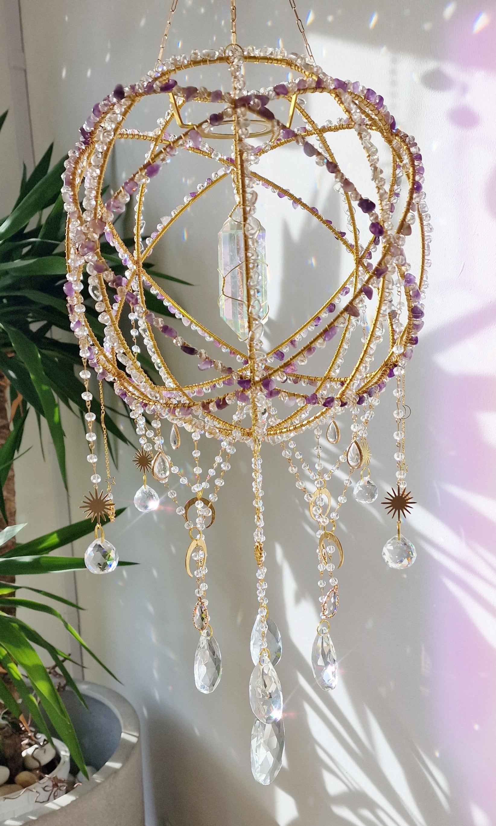 67cm/ 26.5 inch long From top of chain to bottom prism