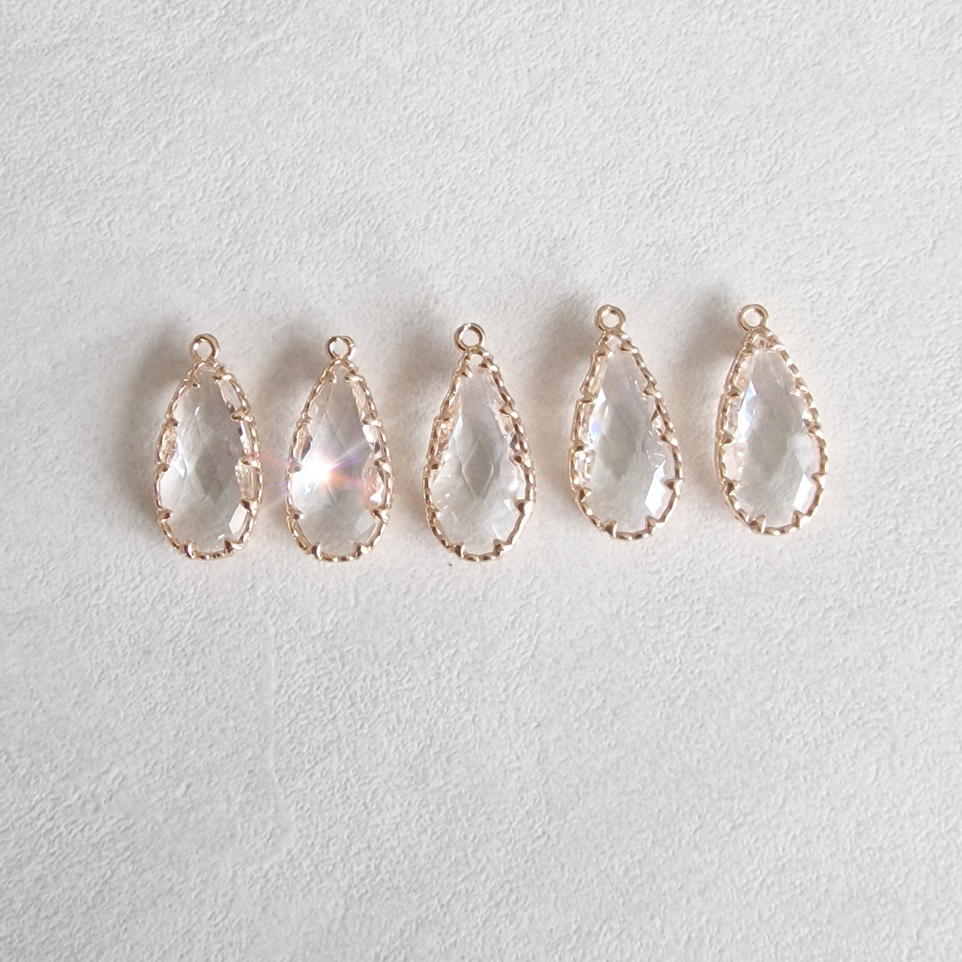 Glass Pendants, with Brass Findings, Faceted, Drop, Golden, Clear