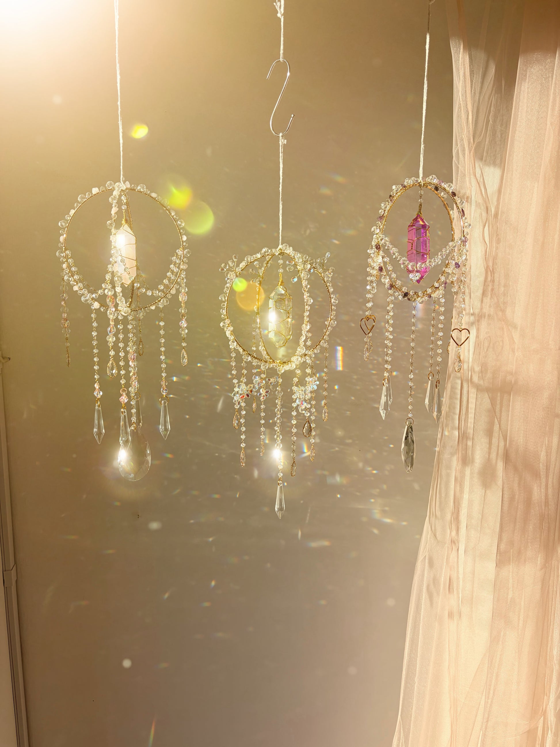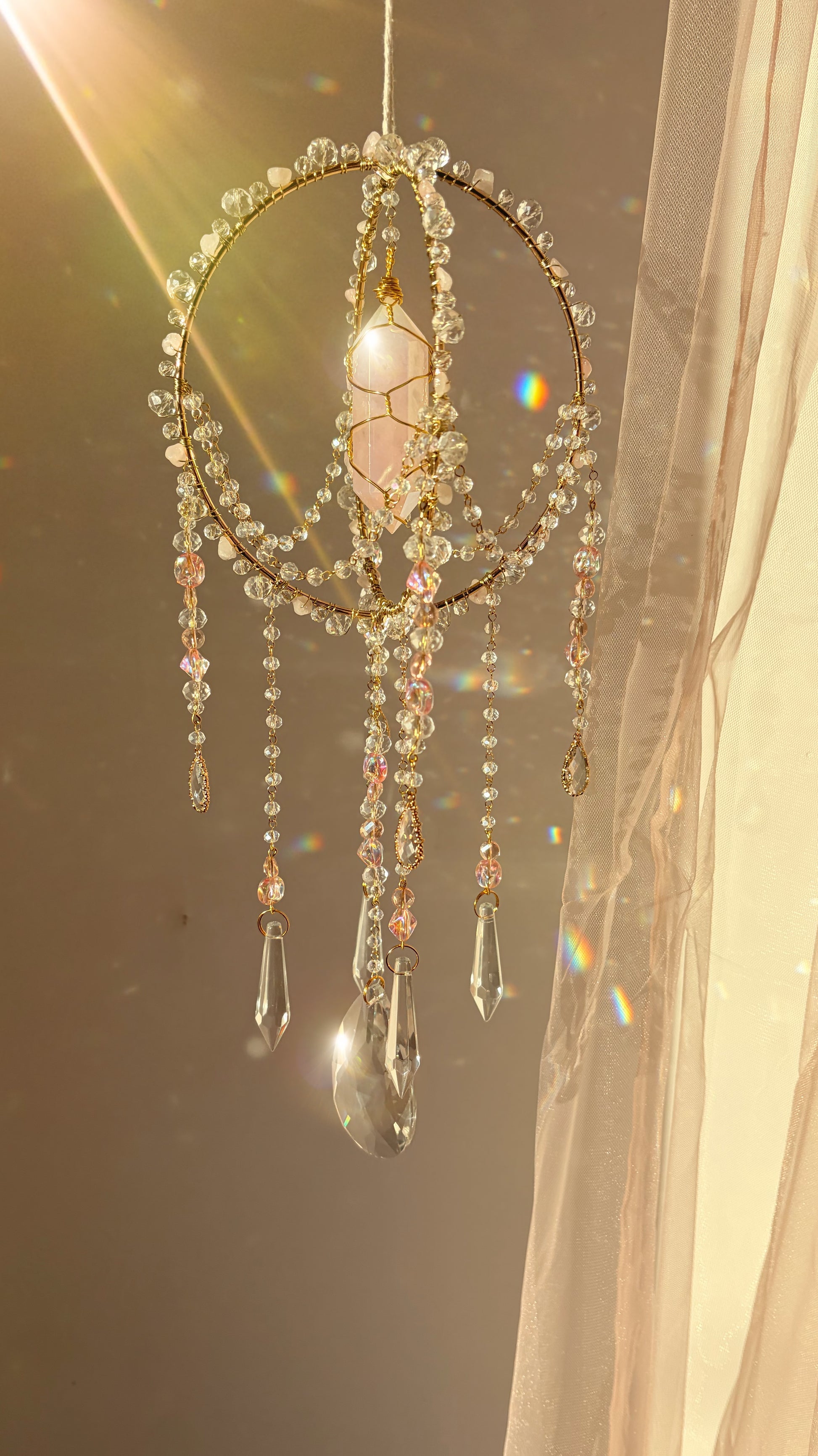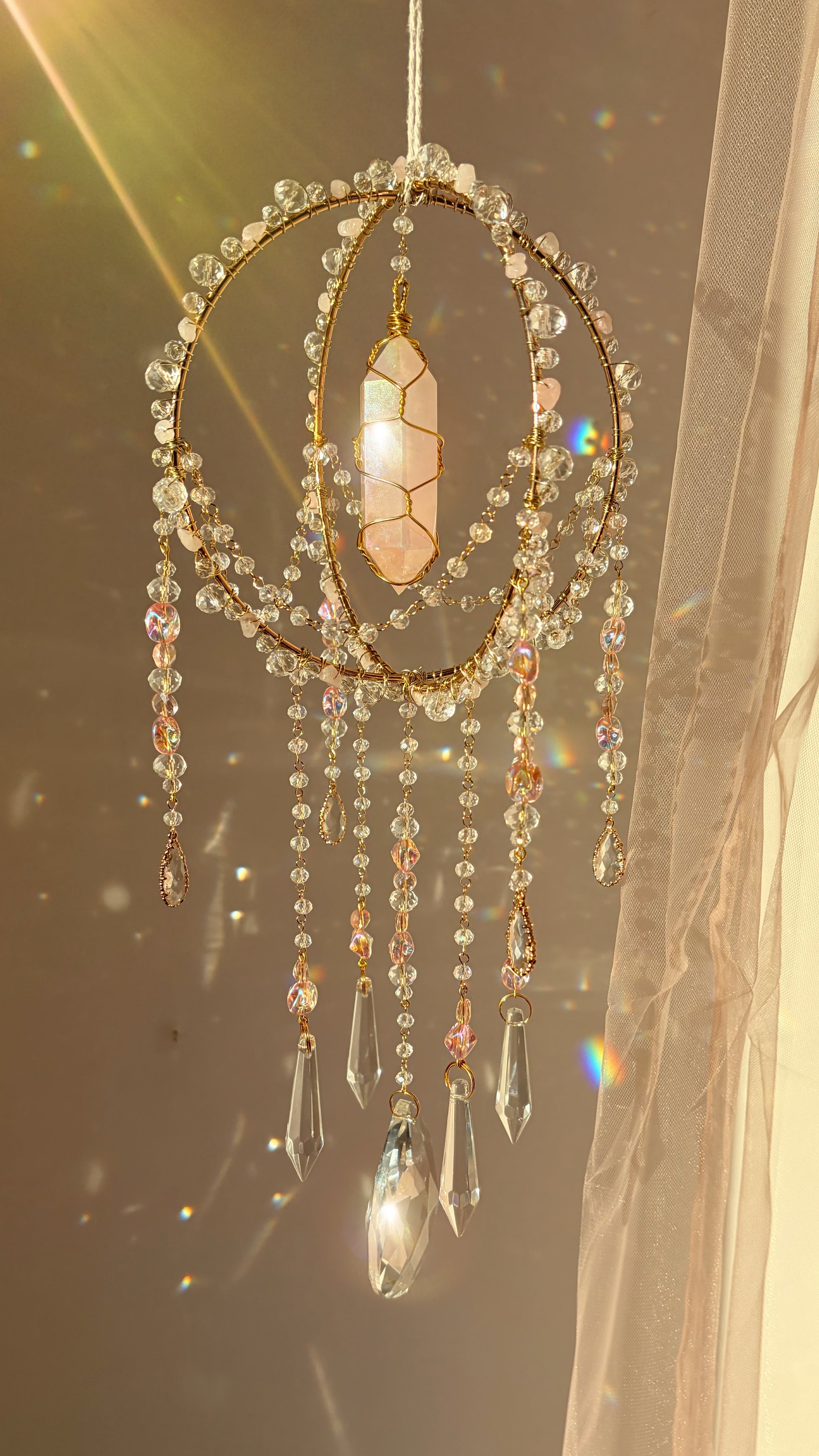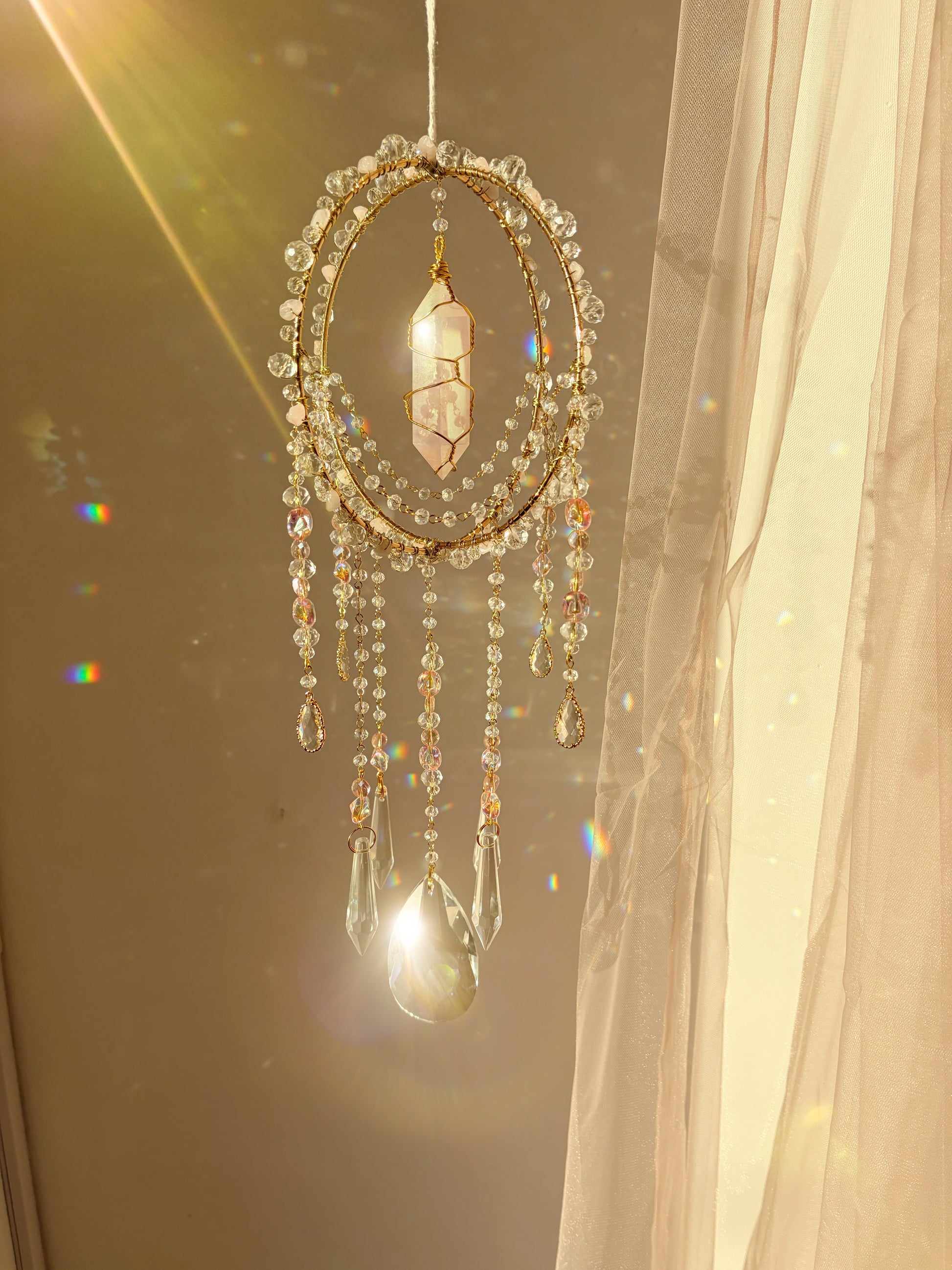From my Enchanted Heart Collection, this one-of-a-kind suncatcher orb is filled with shimmering crystal chips and finished with a radiant aura double point that catches the light beautifully. Designed to sparkle in the sun and scatter tiny rainbows across your space, it’s a little piece of everyday magic crafted under starlight. Only one available ✨